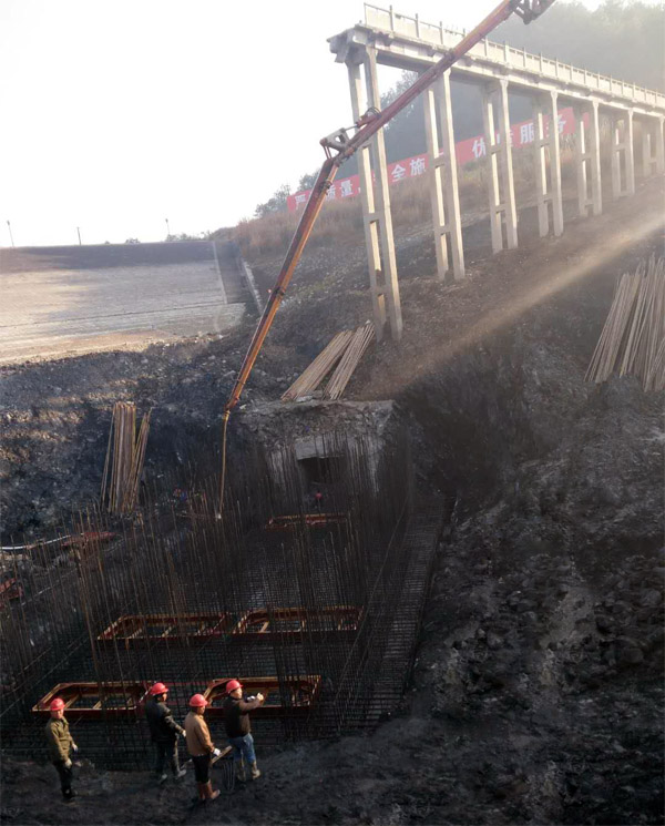 由我公司承建的上高縣城區(qū)供水引水管網(wǎng)工程南港水庫取水口底板混凝土于2017年12月18日順利澆筑完成。